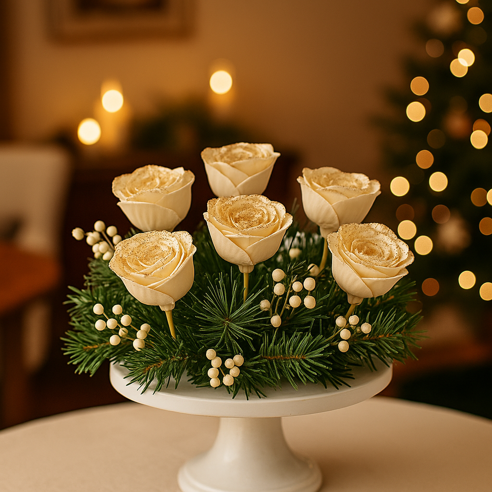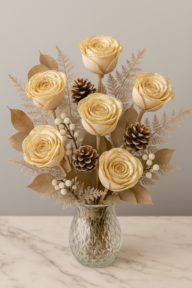 • The sola flowers are made of natural material obtained from cassava. Its starch is processed into flakes, from which the flakes and other fragments connected with wire or thread are cut. Total length 20 cm. Diameter of the flower about 40 mm