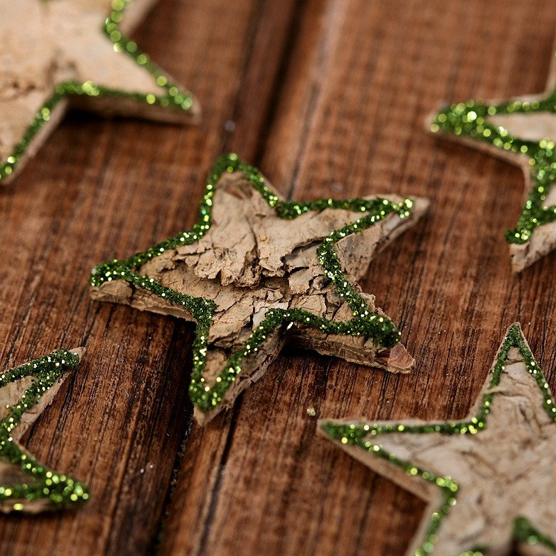 Birchen stars ca. 3-4cm 12pcs/pkg green glitter