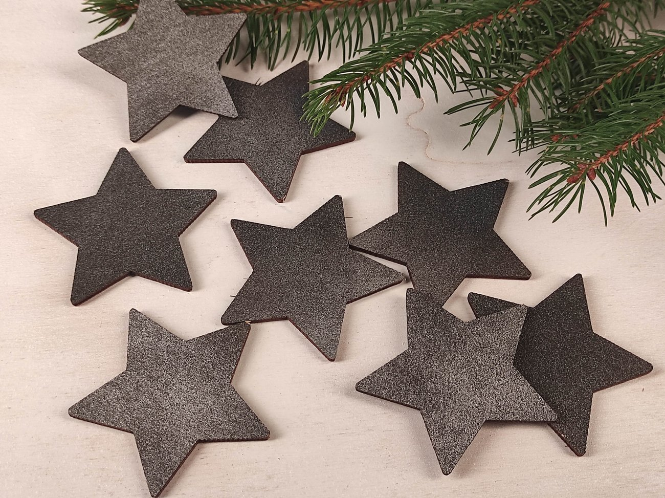Wooden Christmas decorations, Wooden stars GRAPHITE 6 cm-6 pcs / pack