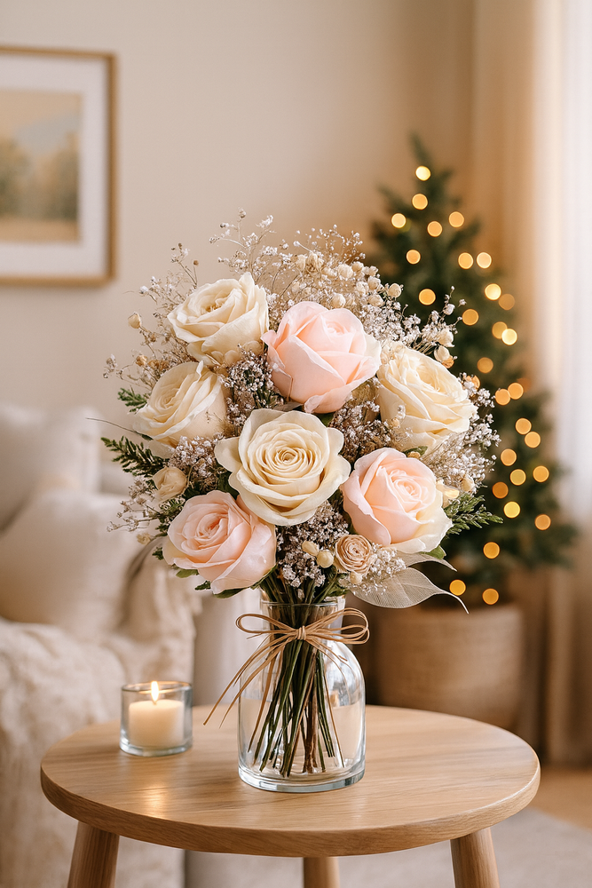 • A bouquet of dried and artificial plants. Roses, sola flowers, field grasses, prepared leaves, dried linen A bouquet for every occasion,