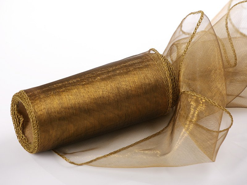 Organza Christmas ribbon, 12/900 cm gold tulle on a roll