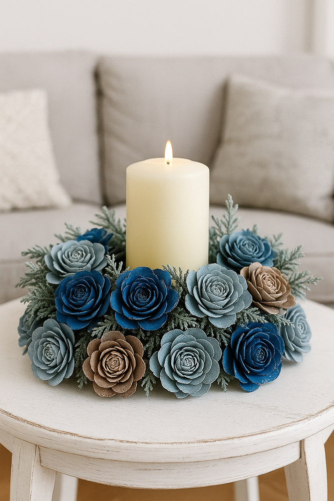 Zedernrosen 6 Stck Köpfchen blau,weiß