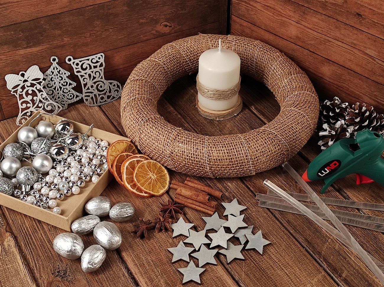 Originelles Set (A) Perlen silbern-weiß-blau