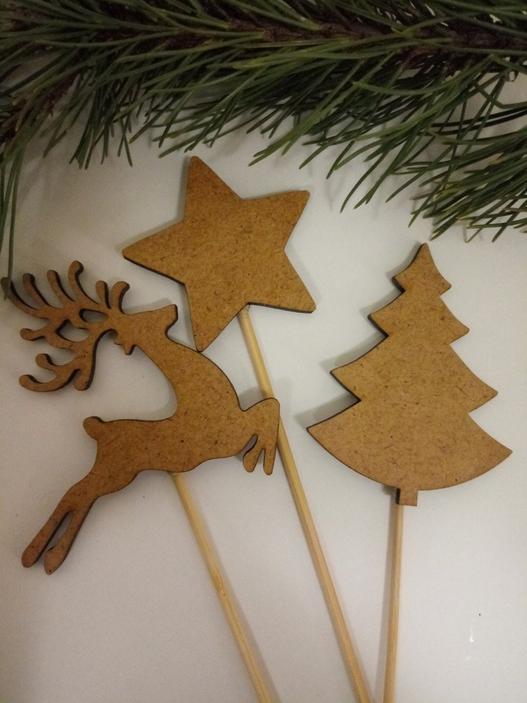 Weihnachtsschmuck 6 cm Holzfiguren auf 20 cm Höhe - 3 Stück / Pack