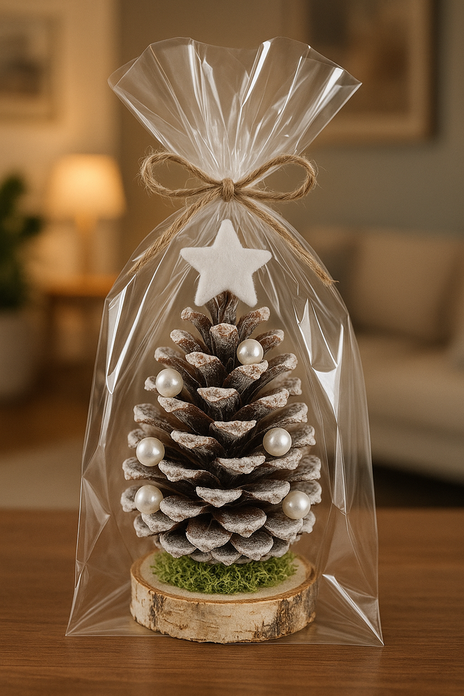 Weihnachtsdekoration, Tannenzapfen mit Perlen auf Holzsockel 8-20 cm