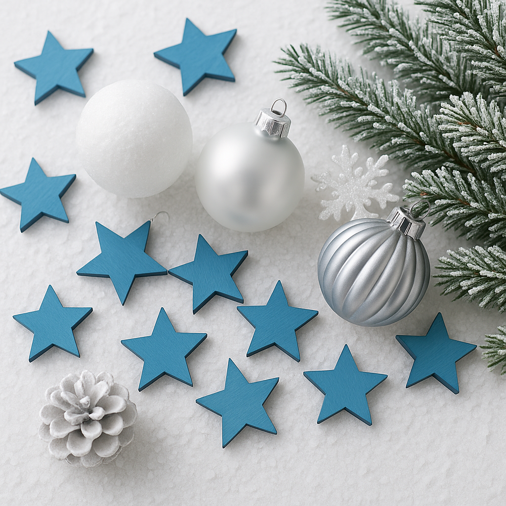 • Weihnachtsschmuck. Holzsterne Weihnachtsschmuck 3 cm. Preis der Weihnachtsdekoration für eine Packung mit 12 Stück.DIY