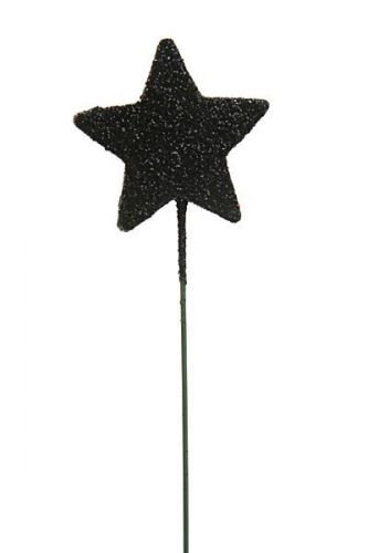 Brokatene Sterne am Draht, 6 Stücke, schwarz