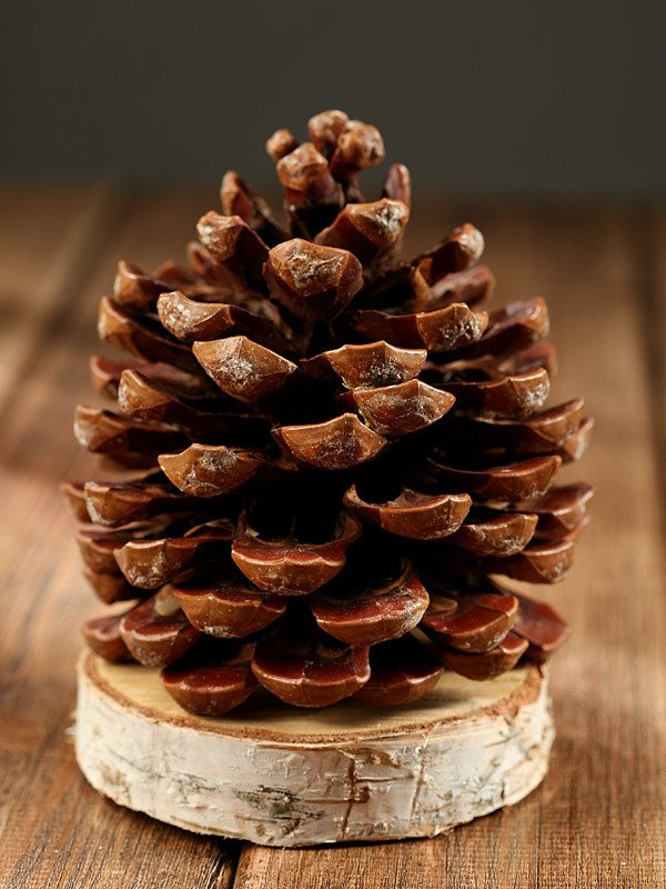 Materiały: naturalna szyszka, drewniana podstawa z brzozy, mech / gałązki / elementy dekoracyjne (w zależności od modelu)