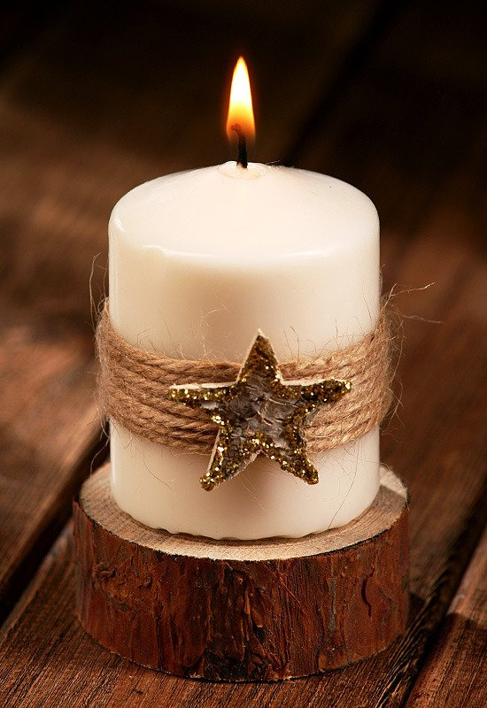 Świeca świąteczna  Gwiazdka na świerkowym drewnie