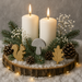Rozłóż szyszki promieniście, między nimi ustaw figurki. Dla efektu GrandDeco dodaj gałązki świerku i świecę w odcieniu kości słoniowej.