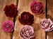 – 12 naturalnych róż z szyszek cedru, w odcieniach głębokiej czerwieni, bordo oraz różu (miks),