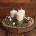 – mech + tealight w szklanym kieliszku + szyszka → szybki, tani, naturalny.