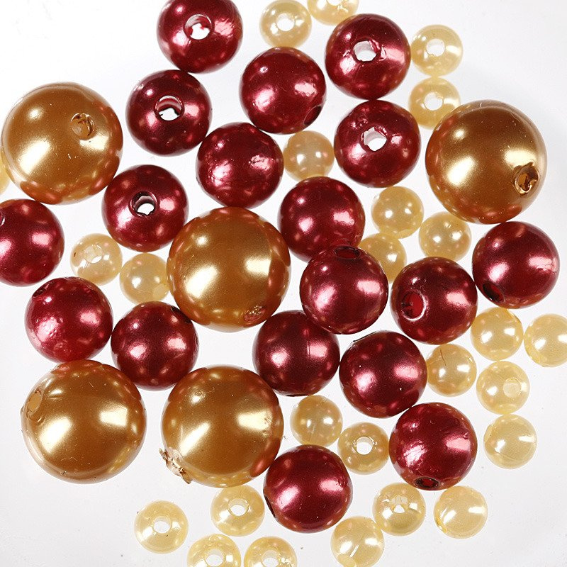 Wszechstronność – Perełki te mogą być używane do wielu różnych projektów. Idealnie sprawdzą się w dekoracjach bożonarodzeniowych, florystyce, sutaszu, a także w wyrobie biżuterii. Ich klasyczne kolory – brąz, złoto i krem – doskonale komponują się z naturalnymi elementami świątecznymi, takimi jak szyszki, gałązki świerku czy suszone owoce.