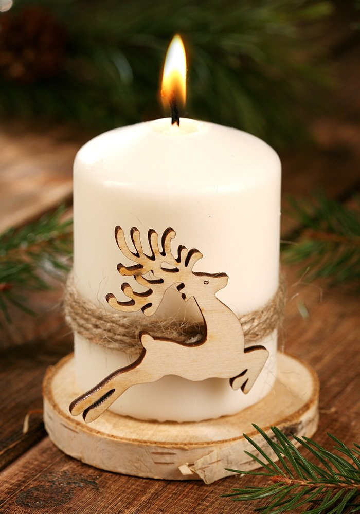 Dekoracja świąteczna: Świeca z jeleniem na plastrze drewna może być używana jako dekoracja świąteczna w domach, biurach czy salach konferencyjnych. Jej subtelny, naturalny wygląd sprawia, że idealnie pasuje do innych świątecznych dekoracji, takich jak gałązki igliwia, szyszki, suszone owoce czy światełka.