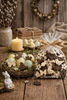 Rozsyp luzem wokół świecy, dodaj mech i drewniane elementy.