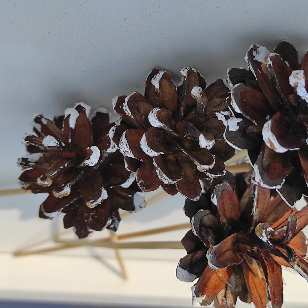Piękno natury w Twoich rękach: Te wyjątkowe szyszki, umieszczone na drewnianych pikach, to o wiele więcej niż tylko ozdobne elementy - to naturalna poezja, która doda niezwykłego piękna Twoim aranżacjom. Możesz wykorzystać je w niemal każdy możliwy sposób, tworząc kompozycje kwiatowe, ozdabiając wianki, stroiki, bukiety czy inne dekoracje. Ich delikatnie malowane brzegi wnoszą subtelny akcent kolorystyczny, który doskonale współgra z różnorodnymi kompozycjami florystycznymi