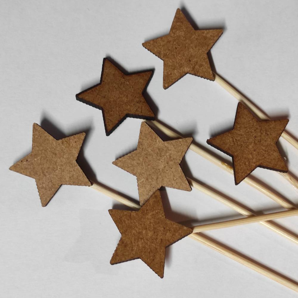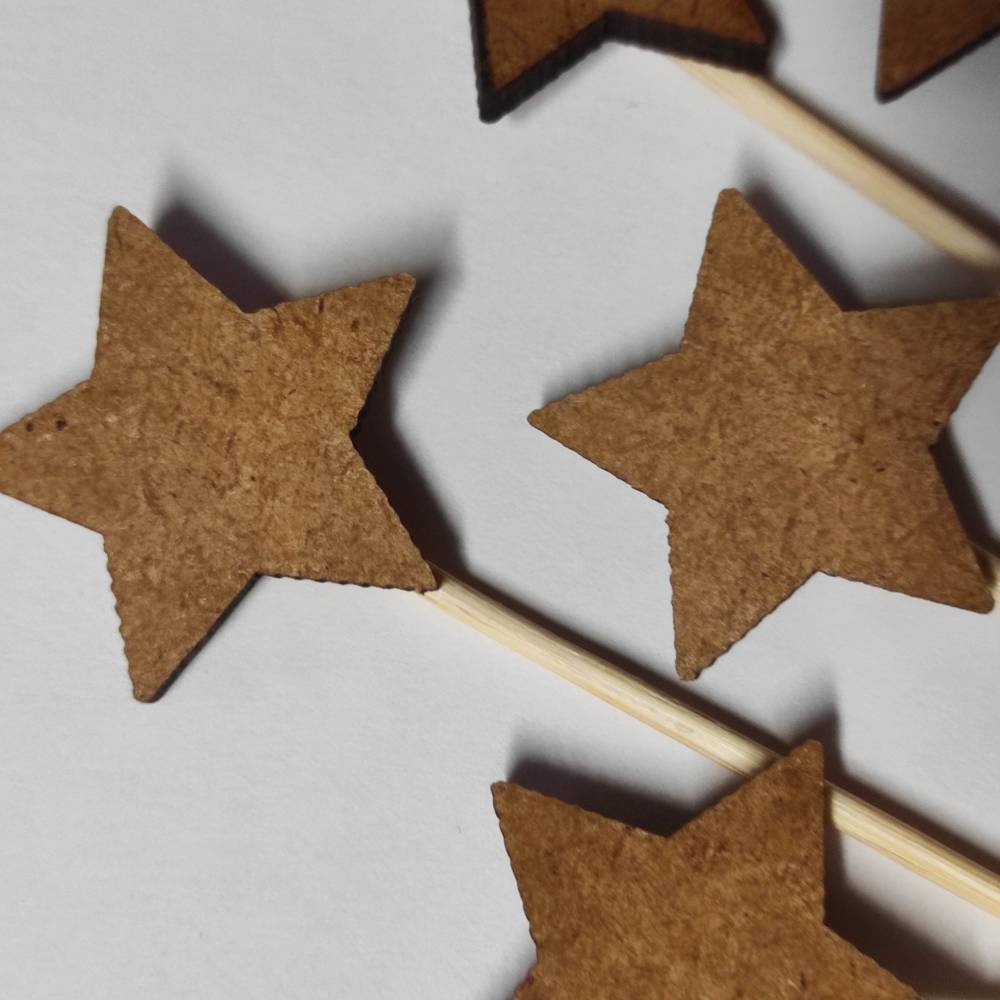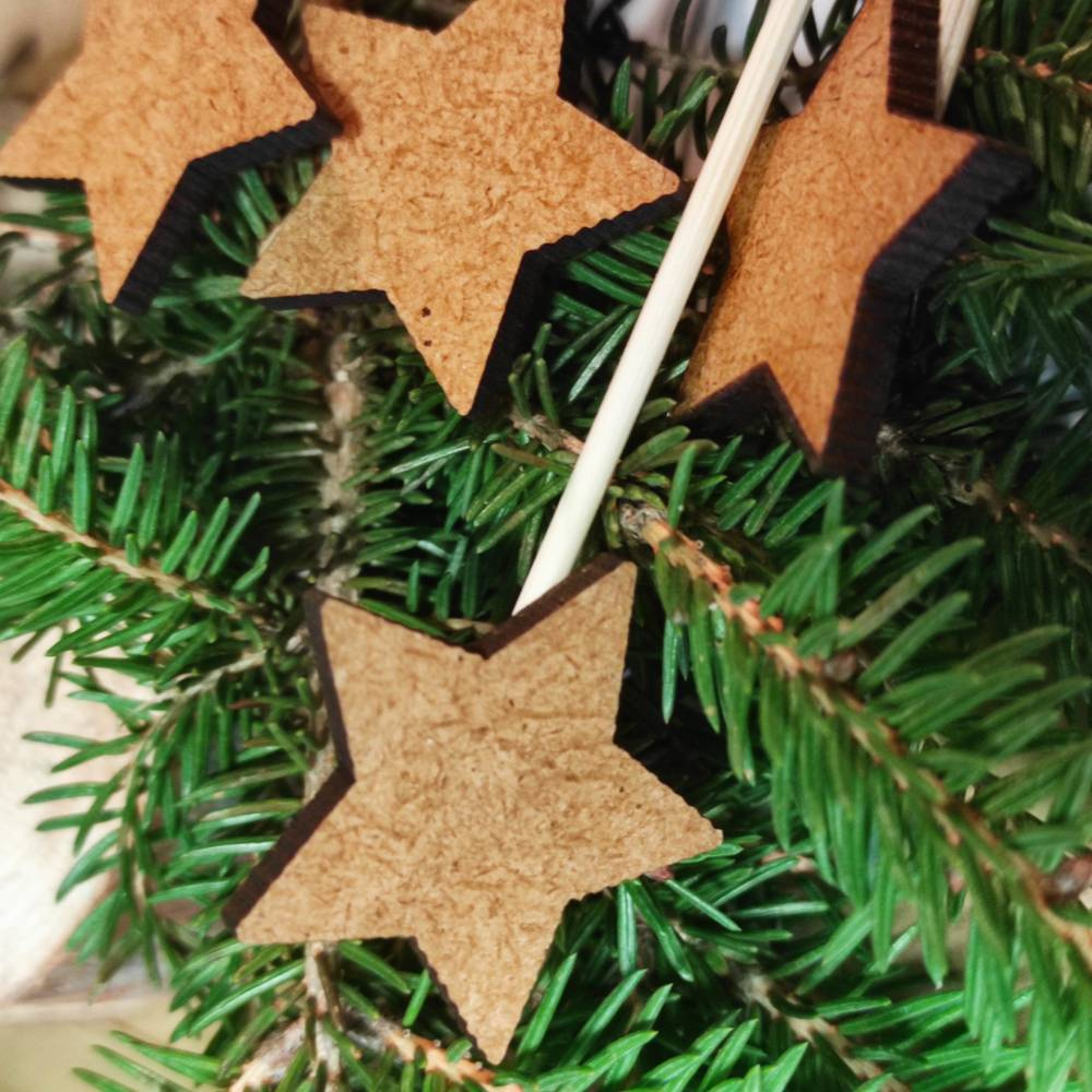 Naturalne ozdoby świąteczne w formie drewnianych gwiazdek o średnicy 3 cm na piku o długości 20 cm to idealny dodatek do zimowych dekoracji. Te drewniane elementy doskonale pasują do kompozycji bożonarodzeniowych, łącząc w sobie prostotę i naturalny urok.