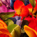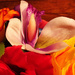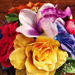 róża główka rozwinięta z listkami, cieniowana pomarańczowa