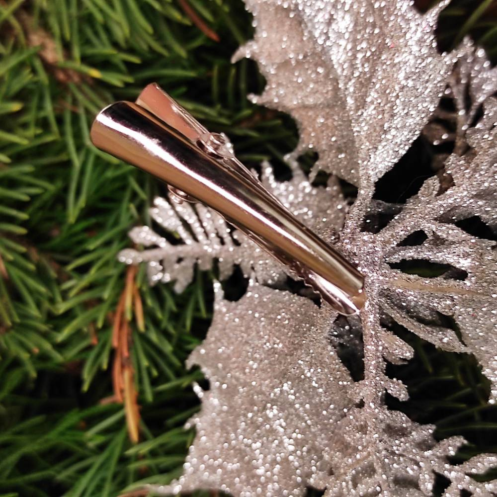 Gwiazda betlejemska  poinsecja brokatowana 14 cm na klamerce srebrna
