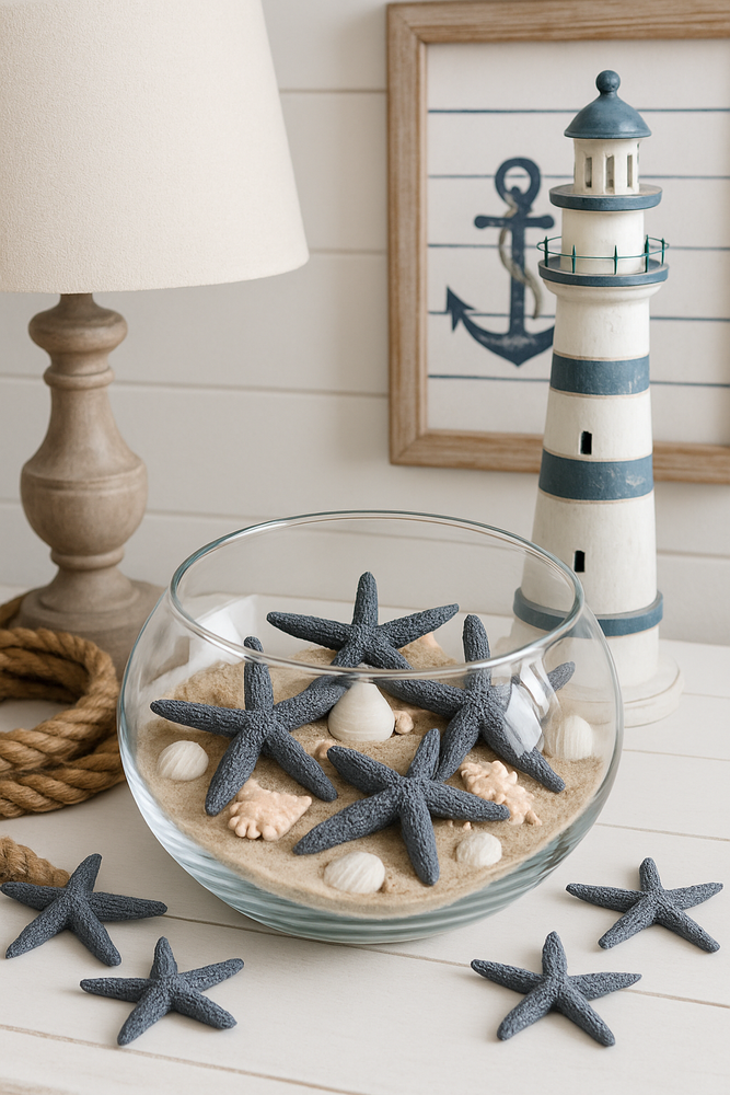 Ozdoby ścienne – przymocuj rozgwiazdy na sznurku lub w ramce jako efektowną ozdobę do sypialni lub łazienki.