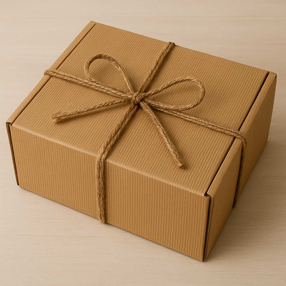 Całość starannie zapakowana w prezentowe pudełko z jutową wstążeczką, gotowe do wręczenia.