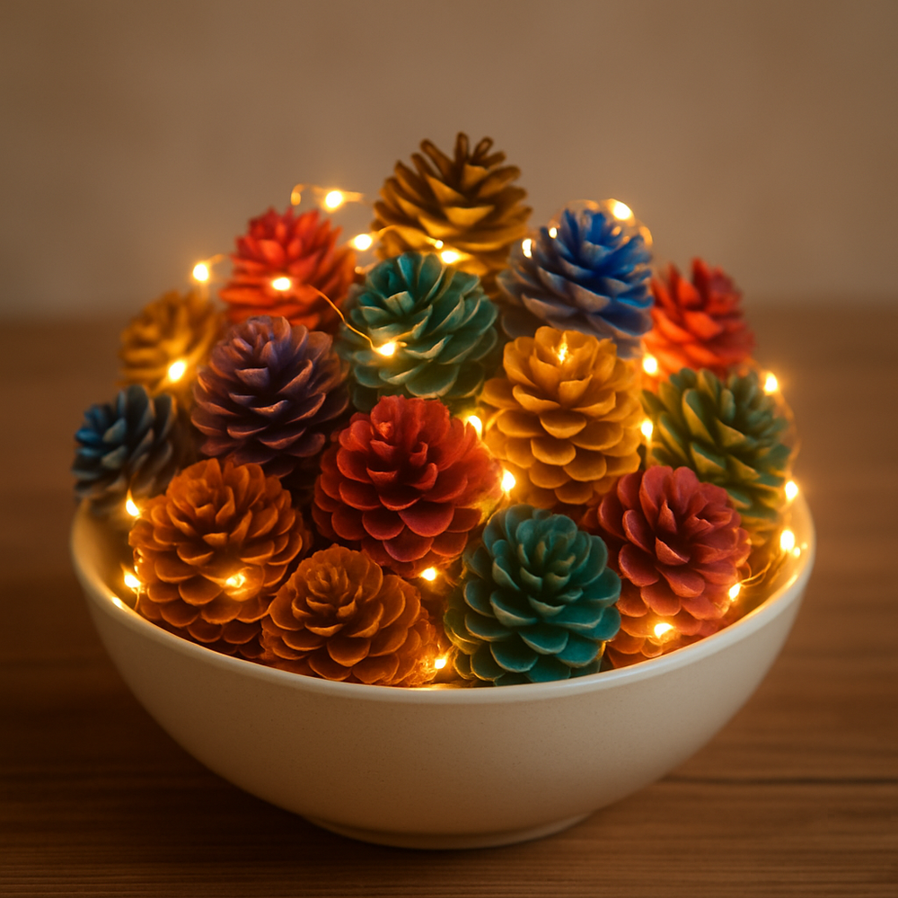Kolorowy zestaw dekoracyjny z kolekcji GrandDeco to propozycja dla osób, które lubią łączyć naturalne materiały z radosną, nowoczesną paletą barw. Każda szyszka została starannie wyselekcjonowana, oczyszczona i pomalowana w żywe, nasycone kolory, zachowując przy tym swoją naturalną fakturę.