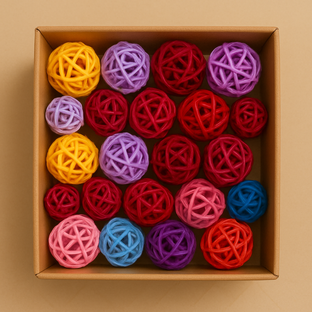 Zestaw 60 kul ratanowych 2–5 cm – 10 kolorów | DIY • Florystyka • Rękodzieło • Arteterapia