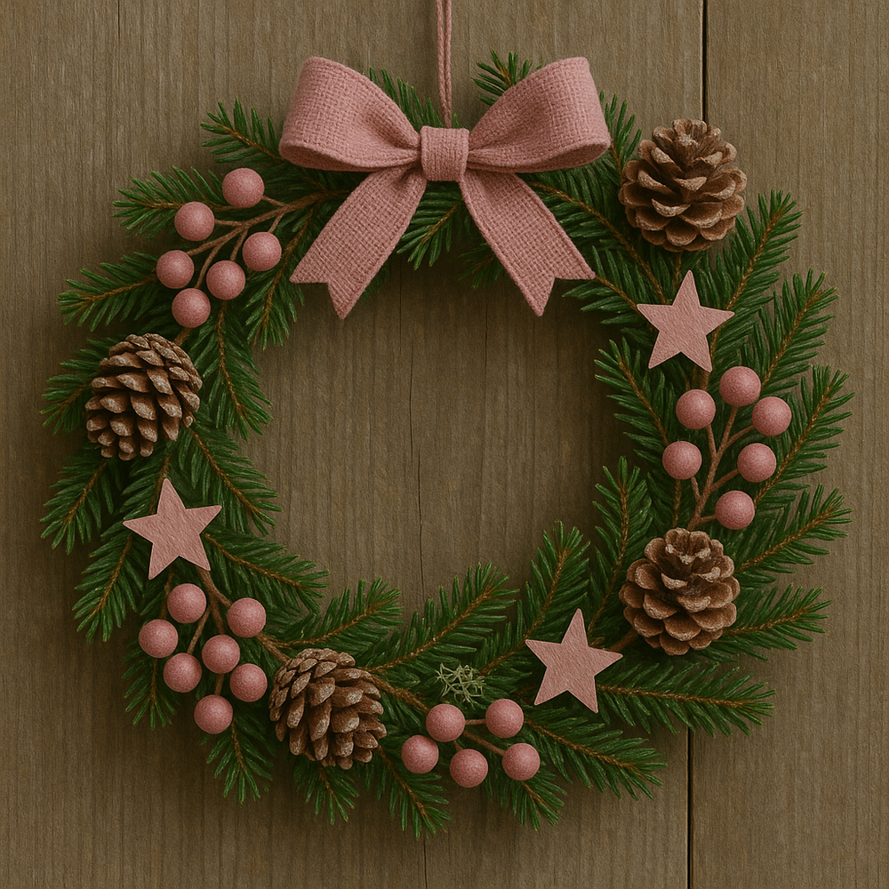 Skład: prawdziwe igliwie, drewno, juta, ozdobne kuleczki