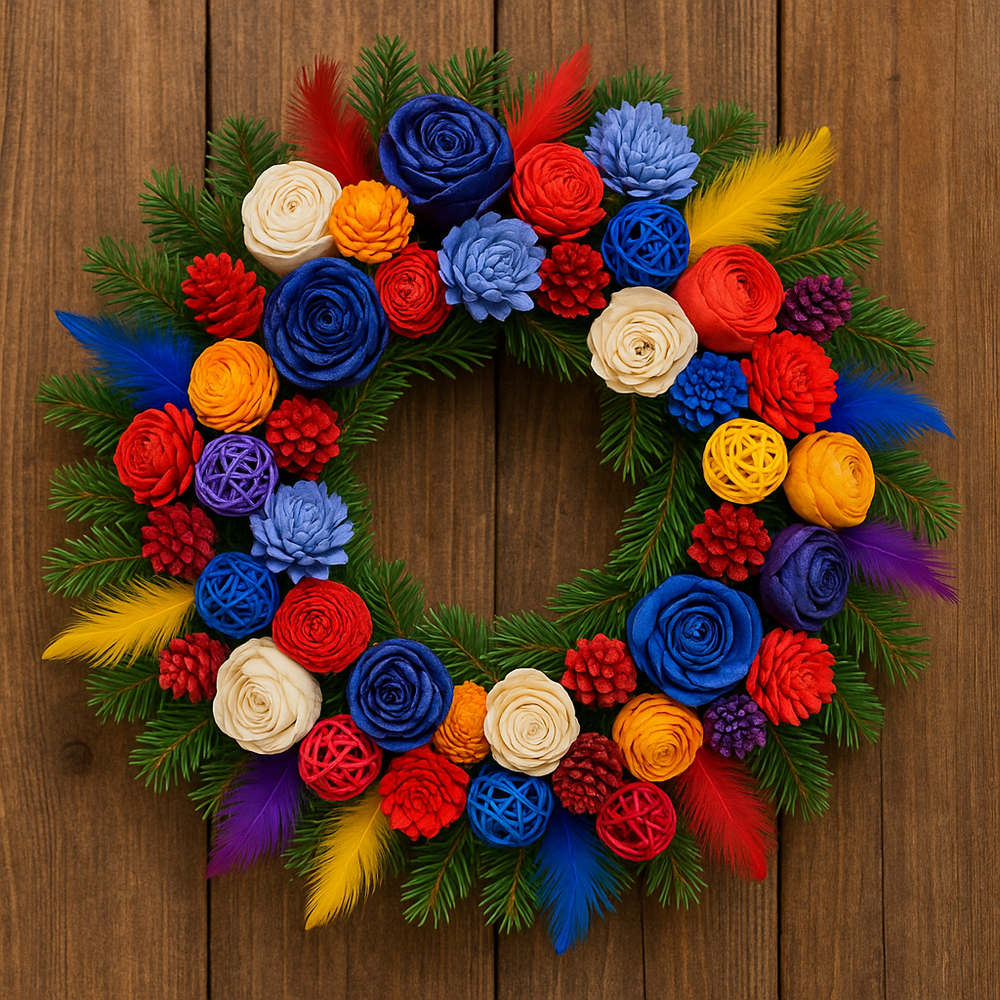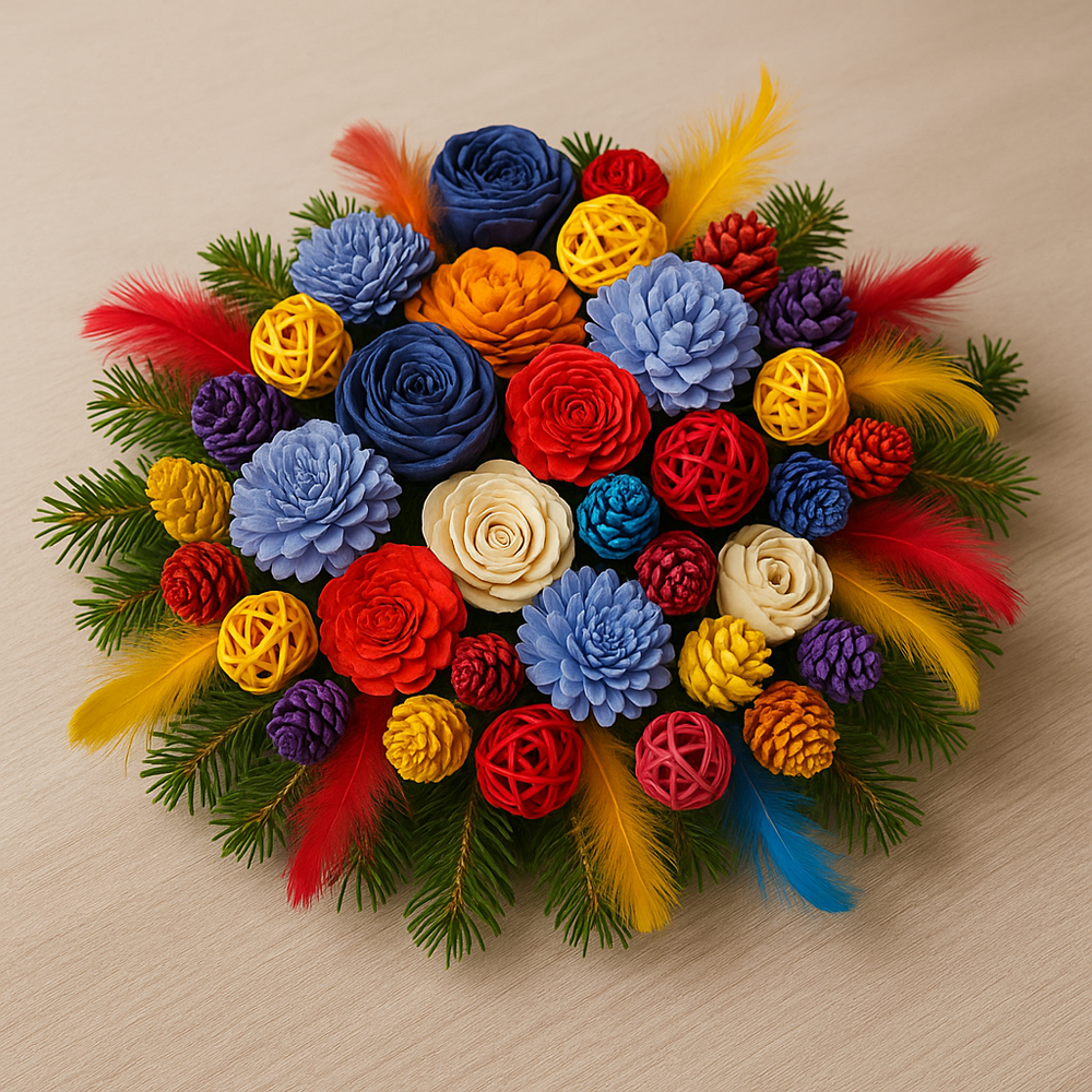 Gotowy mix elementów dekoracyjnych w żywych kolorach – idealny dla osób tworzących rękodzieło, stroiki, wianki, dekoracje stołowe, ozdoby sezonowe, projekty florystyczne, warsztaty artystyczne, zajęcia kreatywne, scrapbook, a także terapię zajęciową i arteterapię.