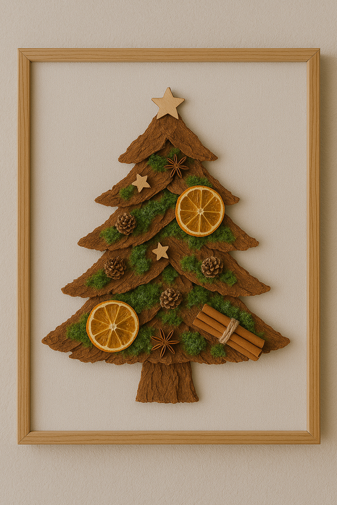 Na końcu doklej najmniejszy element na sam czubek – np. gwiazdkę z suchych kwiatów.