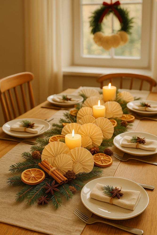 suszone plastry pomarańczy (2–3 przy każdej świecy),