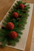 Rozłóż gałązki igliwia na stole, tworząc długi, wąski pas – lekko rozszerzony na środku, węższy na końcach.