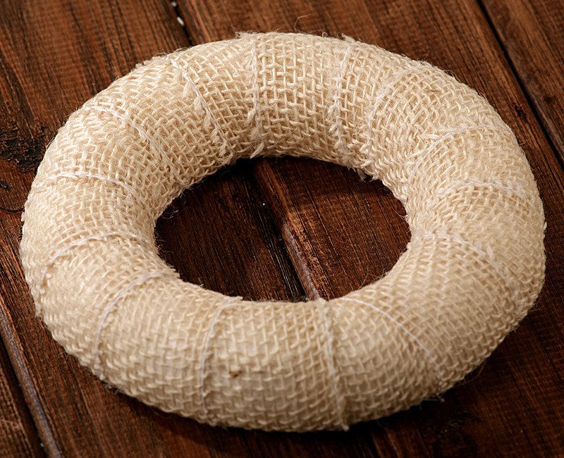 Wianek o średnicy 25 cm wykonany jest na solidnym, lekkim podkładzie owiniętym wybielaną jutą. Materiał ma widoczną, naturalną strukturę i delikatny, kremowy odcień, który pasuje do każdej stylistyki dekoracyjnej: boho, rustykalnej, klasycznej czy nowoczesnej. Juta została owinięta równomiernie, dzięki czemu cała powierzchnia wygląda estetycznie i jest gotowa do tworzenia różnorodnych kompozycji.